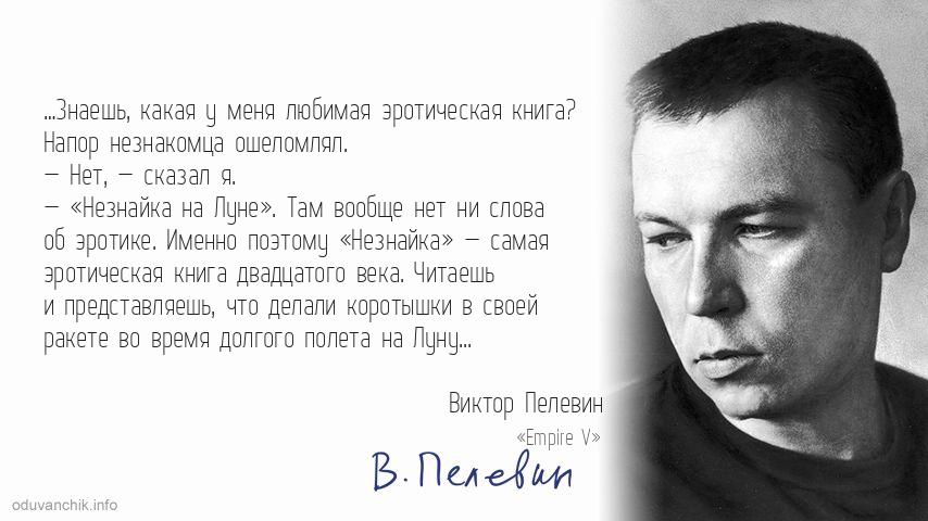 | …Знаешь, какая у меня любимая эротическая книга? Напор незнакомца ошеломлял. — Нет, — сказал я. — «Незнайка на Луне». Там вообще нет ни слова об эротике. Именно поэтому «Незнайка» — самая эротическая книга двадцатого века. Читаешь и представляешь, что делали коротышки в своей ракете во время долгого полета на Луну... |