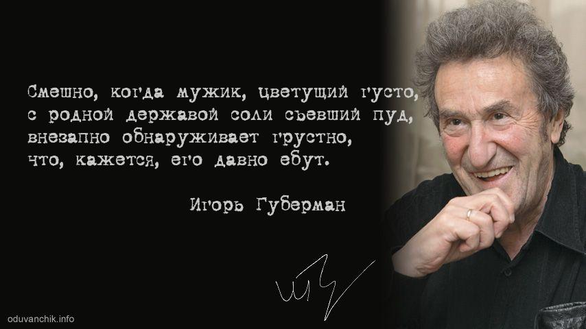 | Смешно, когда мужик, цветущий густо, с родной державой соли съевший пуд, внезапно обнаруживает грустно, что, кажется, его давно ебут. |