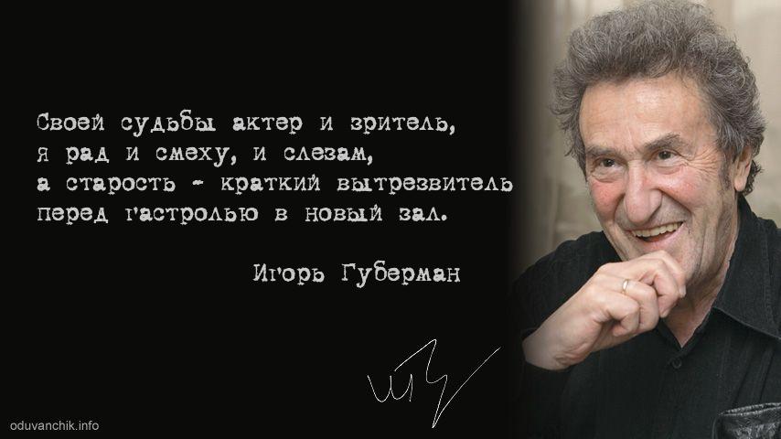 | Своей судьбы актер и зритель, я рад и смеху, и слезам, а старость — краткий вытрезвитель перед гастролью в новый зал. |