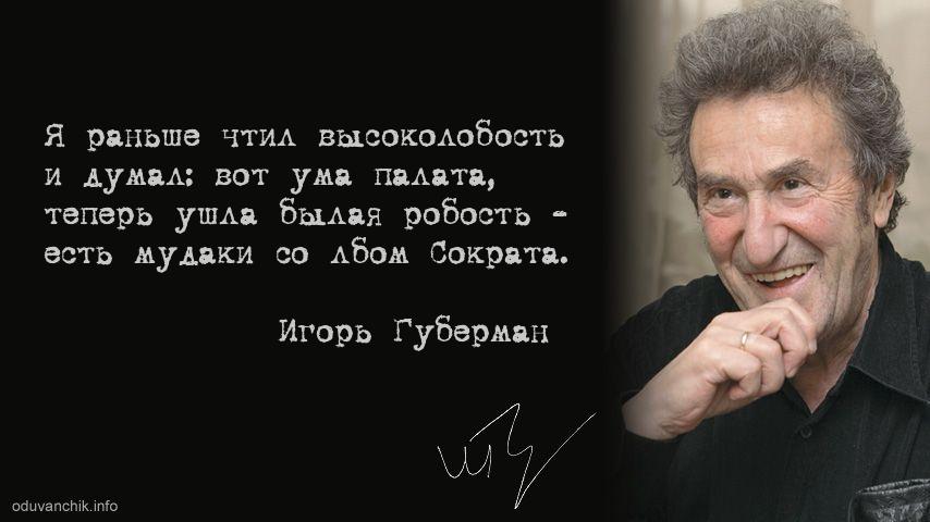 | Я раньше чтил высоколобость и думал: вот ума палата, теперь ушла былая робость — есть мудаки со лбом Сократа. |
