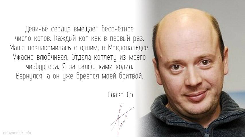 | Девичье сердце вмещает бессчётное число котов. Каждый кот как в первый раз. Маша познакомилась с одним, в Макдональдсе. Ужасно влюбчивая. Отдала котлету из моего чизбургера. Я за салфетками ходил. Вернулся, а он уже бреется моей бритвой. |