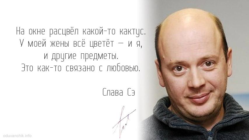 «На окне расцвёл какой-то кактус. У моей жены всё цветёт — и я, и другие предметы. Это как-то связано с любовью.»