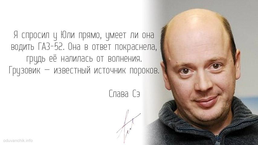 «Я спросил у Юли прямо, умеет ли она водить ГАЗ-52. Она в ответ покраснела, грудь её налилась от волнения. Грузовик — известный источник пороков.»