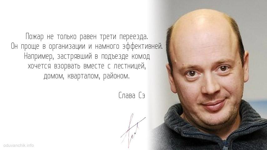 «Пожар не только равен трети переезда. Он проще в организации и намного эффективней. Например, застрявший в подъезде комод хочется взорвать вместе с лестницей, домом, кварталом, районом.»