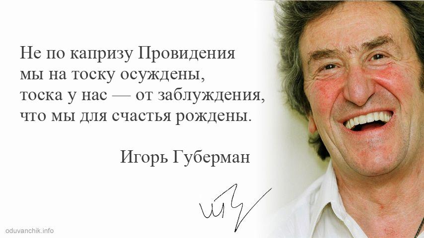 | Не по капризу Провидения мы на тоску осуждены, тоска у нас — от заблуждения, что мы для счастья рождены. |