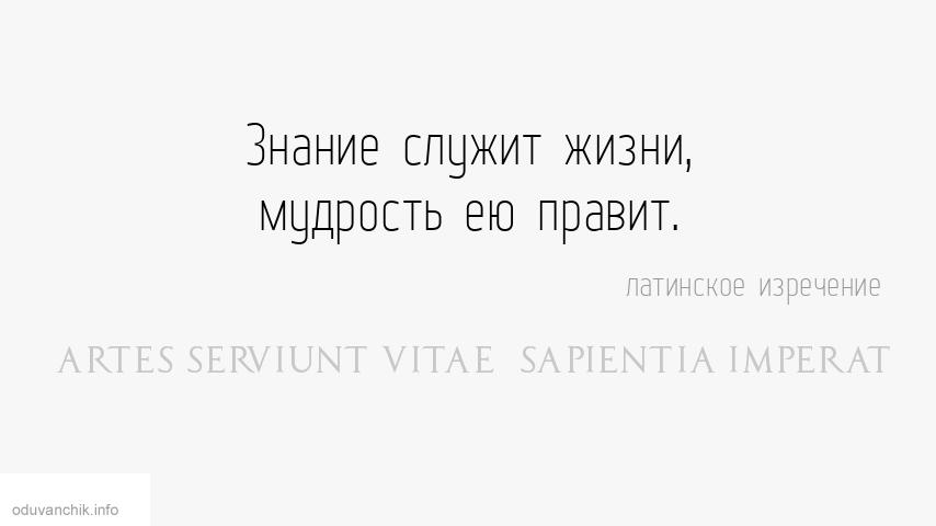 (ориг.: Artes serviunt vitae, sapientia imperat)